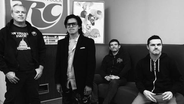 Propagandhi is vocalist Chris Hannah, drummer Jord Samolesky, bassist/co-vocalist Todd Kowalski and guitarist Sulynn Hago.